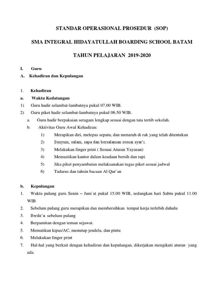 Namun bagi madrasah yang belum memiliki SOP akan kesulitan dalam membuat SOP. 4 Mengevaluasi seluruh kegiatan yang dilaksanakan di Sekolah. Standar operasi dan prosedur yang sering disingkat sop wajib dimiliki oleh setiap jenjang madrasah atau sekolah.